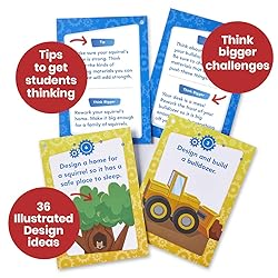 - The 36 open-ended STEM learning cards prompt kids to think outside the box as they are building and improving their designs. STEM cards are NGSS-Aligned. The cards provide structure by giving children ideas on what to build, and how to challenge themselves to enhance their engineering skills without giving away all the clues which helps kids develop creative thinking. Each of the STEM activity cards provides fun design ideas with real-world pictures, tips to get the student to think creatively, and suggested modifications that will further challenge them with their designs and creations. An easy and hands-on way to enhance your STEM or Arts and Crafts lessons! Makerspace Task Cards provide enough guidance so students with little or no supervision. These fun and educational STEM activity cards are an extension from our Makerspace Cart line. They work with the material in our Makerspace Cart or STEM Bins. Makerspace fosters independent learning, creative problem solving, empowers children's curiosity and creativity. It is adaptive and inclusive for all learning styles. Makerspace fosters independent learning, creative problem solving, empowers children's curiosity and creativity. It is adaptive and inclusive for all learning styles. STEM cards includes task prompt, think bigger suggestions, illustrations, task tip, and their grade band. They are an easy and hands-on way to incorporate STEM learning in the classroom, learning center, summer school, or home. For over 50 years, hand2mind has encouraged hands-on learning and discovery, driving deeper understanding and helping children unlock their full potential. With products designed to enhance learning in the classroom and the world around us, we strive to find new ways to encourage hands-on exploration and discovery.
