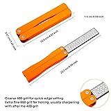 - Companion for your garden tools, knives Practical and durable: Adopting quality titanium plated diamond whetstone, this double sided diamond sharpener is practical and durable, wear-resistant and can serve you for a long time. Featuring compact size, it can be easily tucked into pocket or bags, providing much convenience for carrying and storage. Multiple usages: The shear sharpener is a useful tool especially for gardening, camping, hiking, outdoor sports and adventures, which can help hone and sharpen knife, scissor, shear and other tools. If you're are go on an outdoor adventure, then this tool is indispensable for you. Features: Portable folding design, easy to carry. Double-sided design. (coarse 400 grit and extra fine 600 grit) Widely apply to garden tool, knife, scissor, etc.. Honeycomb surface can sharpen garden implements faster. Titanium plated diamond whetstone for durable use. Specification: Color: black, orange Dimension: 125 x 32 x 15 mm/ 4.92 x 1.25 x 0.59 inches Package content: 1 x Black garden tool sharpener 1 x Orange garden tool sharpener Notice: Please allow slight deviation due to manual measurement.