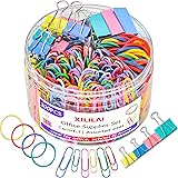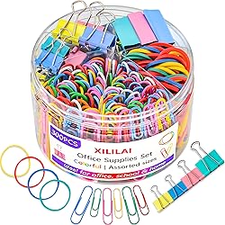 - PERFECT GIFTCute office supplies are perfect for birthday gifts, Thanksgiving gifts, back to school gifts, perfect gifts, interesting gifts for women teens kids coworkers teachers.Perfect for office, home and school daily use, suit for students, teachers, and so on. IMPROVE OFFICE EFFICIENCYUse different binder clips, paper clips, and rubber bands to keep your documents, envelopes, flyers, and posters organized.Rich colors make you feel more relaxed and interesting in the work process! Package Include:20 x 0.6” Binder Clips12 x 0.75” Binder Clips8 x 0.98” Binder Clips100 x 1.1” Paper Clips50 x 1.97” Paper Clips50 x Rubber Rands1 x Plastic box for easy storage