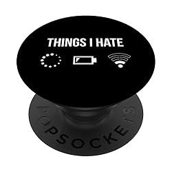 Everyone hates buffering, low battery and weak wlan connection to the internet. Funny programmer, gamer, computer, pc, developer, admin, nerd, geek outfit. Funny unique novelty design. Tech based outfit. The eyecatcher at school or work. Perfect gift for birthdays, Halloween, Christmas, New Year's Eve, Hanukkah, Thanksgiving, Labor Day, Easter, Valentine's Day, Mother's or Father's Day, anniversaries, or everyday gift ideas! PopGrip with swappable top; switch out your PopTop for another design or remove it completely for wireless charging capabilities. (Not compatible with Apple MagSafe wireless charger or MagSafe wallet.) Expandable stand to watch videos, take group photos, FaceTime, and Skype handsfree. Advanced adhesive allows you to remove and reposition on most devices and cases. Note: Will not stick to some silicone, waterproof, or highly textured cases. Works best with smooth, hard plastic cases. Will adhere to iPhone 11, but not to the iPhone 11 Pro nor the iPhone 11 ProMax without a suitable case.