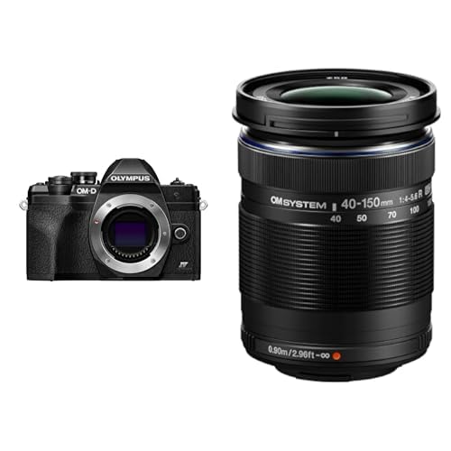 - Olympus OM-D E-M10 Mark IV Mirrorless Camera, Black, with 14-42mm EZ Black lens, 5-axis Image Stabilization, 20 MP Sensor, 3-inch Tilting Touchscreen, Easy Shooting Modes, Wi-Fi/Bluetooth, and 4K Video.