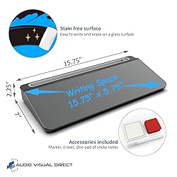 Elevate Your Productivity - Transform your workspace with our Desktop Erase Board. It's the ideal tool for organizing your thoughts, brainstorming ideas, and prioritizing tasks - all within arm's reach. Premium Tempered Glass - Our board boasts the same premium tempered glass used in our renowned wall-mounted boards. Say goodbye to stains and ghosting, as this durable surface stays crystal clear and new-looking with every wipe. Multi-functional - Use our Glass Desktop Notepad as a phone or tablet holder, making it easy to read messages, use voice functions, or browse music while working Complete Set - Our Glass Desktop Notepad Set includes a black wet erase marker, red eraser, and a set of sticky notes so you can start using it right away! Declutter Your Desk - Inner storage compartments help you keep your desk clutter-free. Store pens, markers, notepads, and more, so you can focus on your work in a clean, distraction-free environment while optimizing your desk space. Maximize Desk Space - With dimensions of 15.75" L x 7" D x 2.25" H, our compact desktop notepad is the perfect addition to any desk, helping to keep your notes and reminders close by while decluttering your work area