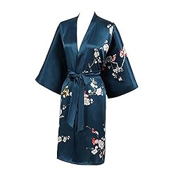 Luxurious, heavy weight, 16 momme mulberry silk woven in a charmeuse weave featuring a glossy finish and matte underside - higher momme weight means heavier, more luxurious silk 100% silk kimono imported from China's highest-rated silk producer. Dry clean only. Gorgeous, eye-popping design digitally printed for enhanced detail and clarity Removable waist sash tie and belt loops for a contoured fit that accentuates curves. Inner ties keep the kimono securely closed even if the belt comes loose. One size fits most - approximately 48” bust/hip/waist and 37" length