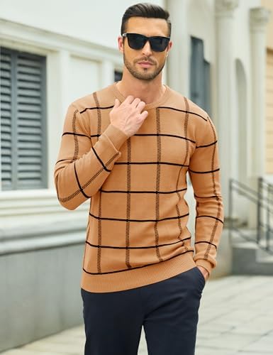 MAGCOMSEN Men's Crewneck Sweaters Cotton Lightweight Plaid Pullover Sweater Warm Casual Fall Winter Sweatshirts