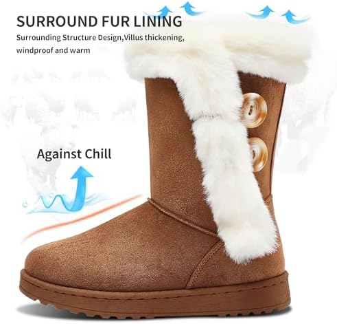 Botas de nieve de invierno para mujer Obtaom, botas de moda de media pantorrilla con botón de resina y ante falso