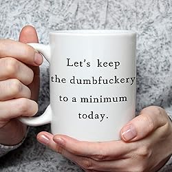 Lets Keep The Dumb Coffee Mug Let's Keep the Annoyance to a Minimum Today Mug Annoyance Mug Funny Coffee Mug for Office Friends Christmas White Elephant Gifts for Coworkers Friends Men Women 11 Ounce