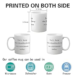 - If you're shopping for a gift, you've found the one! Let’s keep the dumb Mug - Let everyone know how awesome you are with this let’s keep the dumb mug. In the office or daily use, it can quickly increase the atmosphere! Imagine sipping your favorite toasty beverage while lounging the morning away with your significantly amazing other, with every sip, create memories together with morning coffee, afternoon tea, lattes and more! Or revel in the joy of gifting this set to friends in your life on their special day.ADVANCED TECHNOLOGY MICROWAVE DISHWASHER AND FREEZER SAFE We have adopted a new upgrade technology, high-quality ceramics and high temperature technology to make sure the MICROWAVE and DISHWASHER SAFE, Convenient for your daily use!PATTERN NEVER FALL OFF We use high quality ceramics and these mugs are made to last! Double-sided high-definition printing, and our mugs are printed by high temperature and lead-free to make this let’s keep the dumb mug more elegant and safe!ERGONOMIC DESIGN Our let’s keep the dumb mugs using large handle design makes the hand feel more comfortable, and added a matte surface at the bottom, so that the cup will not slip during daily use! PRODUCT INFORMATION Condition: New Printing mode: Double-sided printing Material: Ceramic Color: White Capacity: 11 ouncesPACKAGE INCLUDED 1×Let’s keep the dumb mug 1×Exquisite boxOUR BEST WISHES We know that this let’s keep the dumb mug gift is meant to hold a special place in your heart, and in the hearts of those you love. That’s why we crafted this exquisite gift with all the love WE could muster! It is our greatest hope that this comprehensive let’s keep the dumb coffee mug gift will enhance your life and help you create memories that matter.