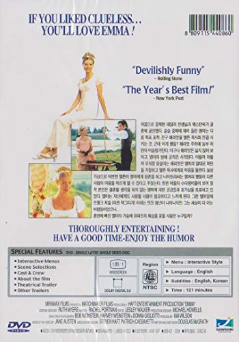 NTSC / Region 0 Korean import. Optional Korean subtitles can be turned off from the main menu. This delightfully fun and lighthearted comedy is based on Jane Austen's classic novel. Dazzling Gwyneth Paltrow shines as Emma- a mischievous young beauty who sets up her single friends. Funny thing is... she's not very good at it! So when Emma tries to find a man for Harriet, she makes a hilariously tangled mess of everyone's lives.