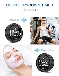 EASY TWIST OPERATION - All you have to do is to rotate the timer and the digits will increase/decrease with the minimum unit of 5s. One button operation, press the ST/SP button on the screen to start or stop counting MAGNETIC COUNT UP/DOWN TIMER - Digital timers count down from 99m55s to 0, or as the stopwatch to count up from 0 to 99m55s. With strong magent on the back, you can stick it to cooker, fridge, sports gym, classroom whiteboard or other metal surface LARGE LED DISPALY/OVERSIZE DIGITS - Black screen and white numbers of the digital kitchen timer form a strong contrast, easy to see. 3" large led screen and oversize digits of the timer make it easy to read HIGH/LOW/MUTE OPTIONAL - 3 levels of alarm volume from 0dB to 90dB, meets your different needs. Meanwhile, the silence design is suitable for classroom, library and office, at this time, the countdown timer will remind you with screen flashing CONSTANT LIGHT/ENERGY SAVING MODE - LIORQUE digital timer has 2 brightness modes. Normal Mode: the brightness is constant. Power Saving Mode: the digits will be darken in 5s and shutdown in another 5s when there is no operation, save the battery MULTIFUNTIONAL TIMER - You can use it as a kitchen timer for cooking, a kids timer for toothbrush, a teachers timer for classroom, a meeting timer for office or an exercise timer for gym