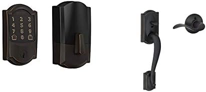 Schlage Encode Smart WiFi Deadbolt with Camelot Trim in Aged Bronze | Schlage FE285 CAM 716 ACC RH Camelot Front Entry Handleset with Right-Handed Accent Lever, Lower Half Grip, Aged Bronze, Standard Interior Trim