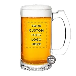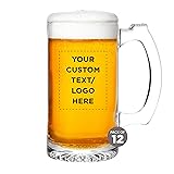 12 Libbey Beer Mugs Set, 12 oz. - Customizable Text, Logo - Groomsmen Glassware - Clear