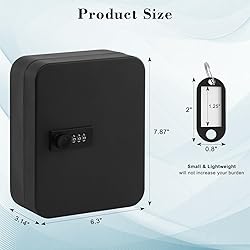 Key Storage Solution: Ensure the security of your keys with our versatile and reliable key storage box. This box includes 20 key rings, identification tags, and key labels, allowing for easy organization and identification of your keys. Avoid overfilling for smoother opening/closing Enhanced Security: Our key lock box features a secure design with a combination lock. With over 1,000 possible combinations, you can set a unique 3-digit entry code for the cabinet, providing peace of mind and ensuring that authorized individuals have access to your keys Easy Installation: Designed for convenience, key cabinet is equipped with a wall-mounted design. The package includes 2 screws and 2 wall anchors, making the installation process a breeze. Simply mount the box onto the wall for quick and stable placement Versatile Usage: This key organizer is suitable for various settings, including homes, offices, apartment complexes, boat dealers, rental car agencies, car lots, body shops, and more. Its multipurpose design makes it an essential tool to securely store and organize keys Premium Quality: Crafted from heavy-duty steel, our metal lock box ensures security and long-term durability. Its robust construction guarantees protection for your keys throughout the years