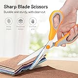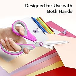 Scissors All Purpose Heavy Duty: Whether it's daily office work, school handicraft activities, or precise fabric cutting, they can easily handle all kinds of daily cutting needs Quality Upgrade Scissors for Office: Made of high-quality, high-density stainless steel, the scissors are three times harder than ordinary stainless steel and remain sharp after more than 100,000 cuts. Every product is screened and tested to ensure the performance you expect Comfortable Soft Grip: Ergonomic handle with non-slip textured TPR material on the finger ring to reduce finger fatigue and hand strain. It stays comfortable even after prolonged use 3 Pairs of 8.5 Inch Brightly Colored Scissors: yellow, green, purple, different colors for different places. Suitable for most items that need to be cut, cuts smoothly, efficiently and durably. Measures approximately 8.5 x 3.4 x 0.46 inches, keep out of reach of children Premium Craft Scissors: If you want to buy scissors for yourself or as a gift for someone, then you can't miss this set. Great for back-to-school season, Christmas gifts, birthday gifts, Halloween parties, Mother's Day, paintings, Easter, Valentine's Day, Thanksgiving, parties, New Year's gifts, housewarming and more