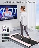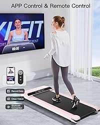 【SPACE SAVER & EASY TO MOVE】 The lightweight treadmill has folding size of 53.7"L×24"W×5.9"H, easy to store, perfect for small space home and offcie. You can put it under desk,under bed or under your working table. Two folding wheels allow you to move and carry easily. 【0-4 MPH SPEED LEVELS & MONITOR PROGRAMS】he smart treadmill maximun speed could reach 4MPH. Different speeds allow you to exercise based on you physical condition. You can slow walk after meal, mild jog to strenthen your immune system or fast walk to lose weight. LED display with programs make the workout extremely effective. 【BRUSHLESS MOTOR & NOISE FREE】 Brushless Motor allows you to excercise at any place without making loud noise. You can excercise at home or even office without bothering anybody. A perfect quite treadmill for home use. The max user weight reaches 265lbs 【ENLARGED RUNNING PLATFORM & SHOCK ABSORPTION DESIGN]】The walking treamill offers shock absorption design, allowing you to walk or excercise without damaging your knee or ankle. The 41.3"×16.2" walking area gives you a more comfortable experience. 【REMOTE CONTROL & SPAX APP CONTROL】This desk treadmill can be controled by remoter. Lightweight remote makes exercise easier. Connected with SPAX App, exercise is more efficient and fun together with coach or multiplayers. Class videos, professional coaches, and data record amaze you. We provide free courses for three months, after which you can choose to renew or not. Enter the password "Umay move it" to have it.