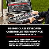 USB-Powered MIDI Keyboard Controller - Featuring 32 velocity-sensitive semi-weighted mini keys and must-have production tools to control your virtual instrument collection and DAW; for Mac and Win OS Auto-Maps to Your Favorite DAWs and Plugins - Whether using MPC Beats, Ableton Live, Cubase, Logic or other, simply select the map on the OLED screen and get producing, livestreaming or performing Native Kontrol Standard (NKS) Integration - M-AUDIO and Native Instruments have partnered to bring NKS support to the Oxygen series, get ready to Kontrol straight from your Oxygen keyboard Choose Your Exclusive Complimentary NKS Bundle - Browse and control Native Instruments presets and sound libraries; select one of three curated Komplete 15 Select bundles: Beats, Band, or Electronic Beat-Maker Mainstays - 8 RGB backlit MIDI assignable velocity-sensitive drum pads with Note Repeat for beat production, clip launching, soundboard triggering and more Total Command of Your Music Production - 4 assignable knobs, buttons and faders for tactile MIDI control of virtual instruments, effect plugins, DAW controls and more Every Tool You Need - Effortless auto-mapping for DAW controls and plugin parameters; Smart Chord and Smart Scale modes; Arpeggiator; pitch and modulation wheels; sustain pedal input; 1/8" MIDI Out Complete Software Production Package Included - MPC Beats, Ableton Live Lite, virtual instruments from AIR Music Tech and Akai Professional MPC Expansion packs Follow the included download card to visit the M-AUDIO website and obtain all supplied software and firmware updates