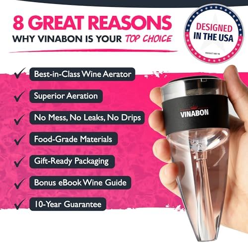• Aerate Your Wine to Perfection Instantly – The Vinabon Wine Aerator improves your wine, enriching its taste, aroma, and bouquet to excellence. Make every wine taste like a million dollars!