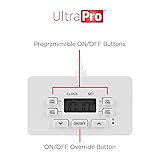 UltraPro 24hr Digital Bar Outlet Plug Timer, 1-Polarized, 2 Programmable Cycles, 5ft Override Tether - White, 1 Pack, 52086