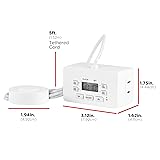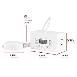 Patent-Pending Control – 5ft. tethered push button provides manual ON/OFF operation and overrides timed programs while simple-to-use schedules make custom automation easier than ever Digital Timer – The digital timer features 1 polarized outlet for control of plug-in lights, seasonal décor, fans and more Custom Schedule – 2 personal ON/OFF options and a 24-hour cycle offer versatile daily control Space-Saving Design – Compact construction with side-access outlet fits in tight spaces while leaving the second outlet free for continued use Indoor Use – Plugs into any indoor outlet to automate LED, CFL, incandescent and halogen lights or other small appliances