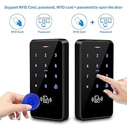 - Product Specifications Access Control Keypad User capacity: 3000 Material: ABS high quality material Panel: touch screen panel Waterproof level: IP68 waterproof, can be installed outdoor Working frequency: 125KHz Card reading type: support EM compatible card Card reading distance: 0-10CM Identification method: card, password, card + password Backlight: has blue backlight Doorbell button: support wired doorbell Wiegand signal: WG26/34 input/output Can set management card: yes Working voltage: DC 12V Working current: ≤ 30mA Door opening time: 0-255 seconds Working temperature: -20 ° C ~ 70 ° C Working Humidity: 20% ~ 90% Product size: 140*70*16mm Electric Strike Lock Material: stainless steel Working Voltage: DC12V+/- 10% Working Current: 110mA-250mA Performance Testing: 1000000 time aging test Dimension: 150*28 mm Opening Mode: 90 degree swinging door Secure Mode: NC type = fail safe type ( Locked when power on, unlocked when power off ) Suitable for wooden door, metal door Power Supply Material: stell AC input: Standard AC100V-260V / 50-60HZ DC output: DC12V/ 3 A Time delay: 0-15 seconds adjustable. Dimension: 140X67X33mm( L/W/H ) Door Exit Button Material: Hard Plastic Maximum Power Rating: 36V DC 3A—5A output Support both NC Mode (Fail Safe Mode) & NO Mode (Fail Secure Mode) Dimension: 86X86MM 10* RFID Keyfobs Material: ABS Operating frequency: 125kHz Detection range: 0-10cm Each card pre programmed and has a unique identity number on it. Package Including 1x RFID access control keypad 1x Electric strike lock 1x Power supply 1x Exit button 10x RFID blue keyfobs