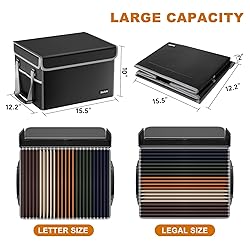 - DocSafe File Box Fireproof File Storage Organizer Box with Lid,Collapsible Document Storage Filing Box for Hanging Letter/Legal Folder,Portable Home Office Travel Safe Box Bin Cabinet with Handle,Black