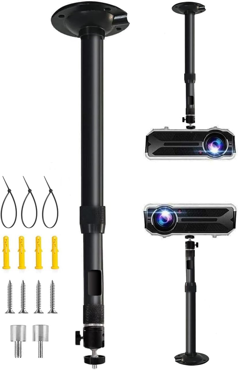 - 1. EXTENDABLE LENGTH - The Projector mount pole has an extending length from 14-24 in / 37-62 cm. Just adjust and fix a perfect length for your projection.