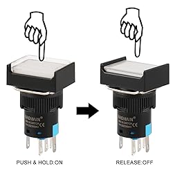 Type: 1NO 1NC; Action Type: Momentary Switching Voltage: AC 250V, 5A; Light Voltage: 5V Button Size : 20 x 15mm/ 0.8" x 0.59" (L*W); Thread Diameter: 16mm (0.63") Size: 18 x 18 x 40mm/0.7'' x0.7'' x 1.6'' (L*W*H); Mounting Plate Thickness: 8mm/ 0.31" Weight: 80g, Package Content: 10 x push button switch
