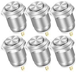 - DaierTek 6pcs 12mm Momentary Push Button Switch 12V Waterproof Power Pushbutton Micro Round Chrome Stainless Metal 2pin N/O