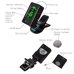 - Packing List:3sets of black nylon classical guitar strings + 1pc guitar tuner + 1pc guitar restringing tool + 1pc guitar capo + 1 pc cleaning cloth Classical guitar strings E-1st MATERIALS: nylon COLOR: Black DIAMETER: 0.028inch (0.71mm) B-2nd MATERIALS: nylon COLOR: black DIAMETER:0.032inch (0.81mm) G-3rd MATERIALS: nylon COLOR: black DIAMETER:0.040inch (1.02mm) D-4th MATERIALS: nylon core silver-plated copper wound COLOR: silver DIAMETER:0.030inch (0.76mm) A-5th MATERIALS: nylon core silver-plated copper wound COLOR: silver DIAMETER:0.035inch (0.89mm) E-6th MATERIALS: nylon core silver-plated copper wound COLOR: silver DIAMETER:0.043inch (1.09mm) Package size for 1 set:11.5cm x 11cm x 0.5cm Clip-on Tuner 1. A4 frequency:440Hz 2. Tuning item: Chromatic, Guitar, Bass, Violin, Ukulele C(standard mode 4G 3C 2E 1A), Ukulele D(one note higher 4A 3D 2F# 1B) 3. Dimension: 2.0 x 1 x 3.0in (50 x 26 x 76 mm) 4. Weight:0.67oz(19g) How to tune? 1. Get the mode ready for tuner as what you want. 2. Clip the tuner onto your instrument, adjust the tuner for the best viewing angle. 3. The tuner displays note name and accuracy when you play the instrument. If indicator points left, the note is flat; if indicator points rights, the note is sharp; the note is in tune if indicator stays vertical and the screen in green. 3 in 1 Guitar Restringing kit Guitar cutter & guitar winder & guitar pin puller are built in, made of ABS and stainless steel, durable and easy to use. Capo 1.Made of aircraft-quality aluminum, with silicone pads, spring-action grip. 2.Capo tight on strings and no more fret buzz, stainless steel spring with internal memory to provide strength and fatigue resistance.