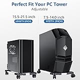 Sturdy PC Stand: Our computer tower stand is made of high-grade steel & ABS materials, providing a stable base for your PC. The unique non-slip texture surface firmly grasps the PC case, preventing falls & scratches. Use as a CPU stand or desktop tower stand. Adjustable Computer Tower Stand: The CPU stand is adjustable from 7.5” to 14.0” in width & 15.5” to 21.5” in length, accommodating most computer towers with widths ranging from 6" to 13.5". Perfect as a desktop tower stand, PC holder, or PC riser Cpu Stand Helps Dissipate Heat: The open design of the stand helps dissipate heat from your computer, keeping it cool and preventing overheating. Ideal as a computer floor stand or computer tower floor stand Mobile Desktop stand : The mobile adjustable computer caster has four casters, making it easy to move the computer tower wherever you need it. Two of the wheels with brakes can keep the CPU still, making it ideal for use as a computer stand for desktop tower, PC holder for carpet, PC holder under desk, and computer tower stand floor Easy to Assemble : The PC stand is easy to assemble with minimal effort and no special tools required. You can have your computer tower elevated and organized in no time