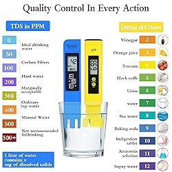 Super value - 1 PH Meter(yellow) +1 TDS & EC Meter (blue)+1soil tester kit (green). Total is 3 PCS. Functions - The digital pH pen is equipped with auto temperature compensation function. TDS meter has lock & auto shut off function(Kindly remind : This meter can't test sea water.). Pushing the button, it can display the data about water purity level on the screen in PPM (parts per million). The soil meter can test soil pH to help you control the PH level in soil. (Note: this tester is designed for testing soil ONLY.) Accurate & reliable - these testers can test quickly and accurately within ±0.01 pH. It only takes a few seconds to show accurate and stable reading for the result to appear on screen. Easy to use - ph tester and TDS meter have sensitive electrode sensor ,simply press "ON". It only takes a few seconds for your result to appear the data on screen. Soil test kit just need to insert the probes into the soil about 4-6 inches, and wait for about 10 seconds to read the intuitive data. No battery required. Widely application - these meters are designed small and convenient. PH meter and TD&EC meter can test pH balance, ideal for testing drinking water, swimming pools, aquarium, spas, hydroponics, food and more. Soil tester is applicable to plants, garden, lawn and farm such as rice/vegetables/flowers etc.