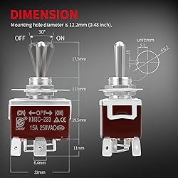 - DaierTek Waterproof Reverse Polarity Toggle Switch 12V 30A DC Motor Control RV Power Jack Switch Momentary (ON)-OFF-(ON) DPDT 3 Position 4PIN Wired