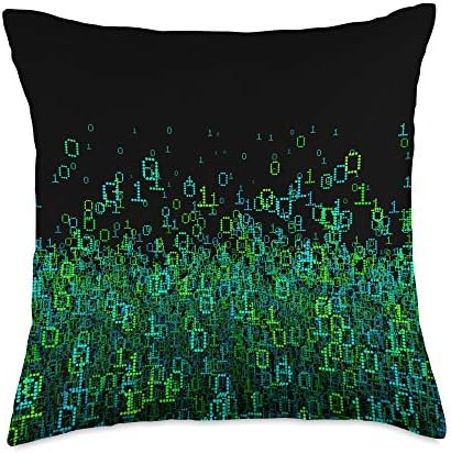Binary Code Computer Software Gamer Data IT Pattern Green Throw Pillow
