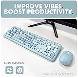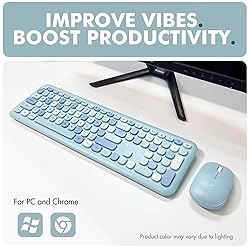 AESTHETIC KEYBOARD TO EXPRESS YOURSELF: Turn your plain desk into a place you feel inspired to work on. Our blue keyboard and mouse combo helps you feel more motivated, confident, and in control of your workspace. COLORFUL WIRELESS KEYBOARD AND MOUSE SET READY FOR ANY TASK: This bubble keyboard features 110 round keys with 18 shortcuts. Feel the nostalgia of a typewriter keyboard with every click that is tactile, responsive, and oh-so-satisfyingly fun. SIMPLE PLUG AND PLAY, ZERO HASSLE RETRO KEYBOARD: Begin typing on the cute keyboard and mouse combo instantly. Just plug in the USB dongle and get playful and productive. Batteries are included for this pastel keyboard and mouse. EASY WIRELESS CONNECTIVITY: Enjoy a seamless wireless connection with a range of 30ft. A single 2.4G USB dongle is used to pair the type writer keyboard and mouse wireless combo to your computer. MADE FOR YOUR EVERYDAY DEVICES: Whether it’s a PC, laptop, computer, or Chromebook, this cute keyboard and mouse wireless combo connects in seconds, no drivers, no delay. It's creativity, your way. WE'VE GOT YOU COVERED: At X9, your experience is valued tremendously. Therefore, we back our ASMR keyboard and mouse wireless set with friendly support, easy returns, and a 2-year support.