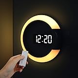 mooas Mood Light LED Silent Digital Wall Clock with Remote, Backlit Nightlight, Modern Digital LED Wall Clock Display Alarm Clock Melody 5 Brightness for Bedroom Living Room