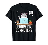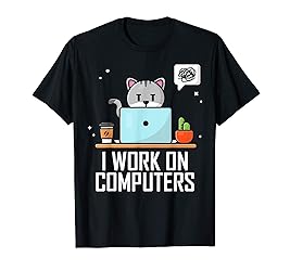 - This I Work on Computers design makes a great gift on Birthdays, Christmas, Easter or any other holiday for the kitty lover that enjoys working on technology. Software Engineers that fix mistakes, solve problems and love cats will adore this product! This vintage distressed design is a perfect present for those on an IT team, gamer, code writer, geeks and nerds, app developers, information technology enthusiasts or science engineering students and teachers. Cute and colorful Cats! Animal activists too!