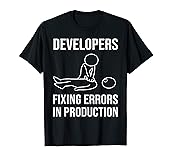 Searching for a funny programming joke? Developers fixing errors in production is for you! For mother, father, uncle, aunt, daughter, son, teenager, students and the whole family. A funny gift for computer scientist, data analyst, programmer, developer, computer science student, informatics student, admin, systemadministrator. For birthday, christmas, any other holiday and for the job! For men and woman Lightweight, Classic fit, Double-needle sleeve and bottom hem