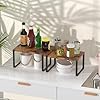 - Space-Saving Stackable Countertop Rack: The industrial counter-shelf organizer is built with two tiers stackable and expandable design. It works great as a spice organizer in the kitchen. A cosmetics display stand on desktop; cabinet organizer for plates, food jars etc. It is ideal for home and office use with its neat and modern appearance.