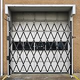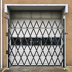 - 85”H x 85” W Single Folding Security Gate Sturdy G14 Channel SteelThe metal fence security gate is constructed of 3/4" 14 gauge channel steel, durable for long-lasting use. Expandable Width 85” The single folding gate can expand from 4" to 85” width. With height: 85”. It offers physical protection for your assets, belongings, or goods, giving your property a professional look. Smooth Rolling Wheel The rolling wheels on the bottom of the expanding security gate have max flexibility to swing up to 360 degrees for a clear-opening/ closed state, while with its brake to instant fix the position. Security Lock Design The barricade gate comes with specially designed lock hasps to match the secure padlock. And with three keys enclosed to the padlock for in case, you can use it in the entrance without any worries. Hassle-Free Installation The accordion gates can be either recess or surface mounted and are equipped with mounting hardware for easy installations. Just drill some holes and mount correctly on the cement or concrete walls. Extensive ApplicationThese accordion doorway gates can control access to hallways and receiving doors without affecting ventilation or visibility. Widely used for door securities of the basement, garage, storefront, etc. Specifications Material: 3/4" 14 Gauge Channel Steel Surface: Powder Finish Door Type: Single Folding Door Height: 85” Collapsed Width: 4" Expanded Width: 85” Item Weight: 33.07 lbs/ 15 kg Color: Black Package Content 1 x Folding Security Gate 1 x Padlock with Keys 1 x Set of Mounting Tool
