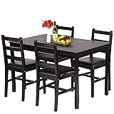 FDW | 5-Piece Solid Wood Dining Table Set for 4 | Brown | Pine Kitchen Table with Upholstered Chairs | Space-Saving Design | Smooth Easy-to-Clean Surface | for Dining Room, Apartment, Restaurant