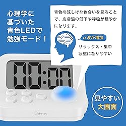 Learning timer S for studying, qualification, time management and more. The convenient functionality of the traditional learning timer remains intact, while also making operation easier on the large screen. The button will light blue when time reaches it. The blue color is said to be a relaxing and focused color and psychology, and is designed to make it difficult for you to lose your mind while studying It looks like a game console and is sure to inspire your interest. Instead of managing time on your smartphone or other phone, this timer will motivate you to use your own personal timer The button will light blue when time reaches it. The blue color is said to be a relaxing and focused color and psychology, and is designed to make it difficult for you to lose your mind while studying Features a 45 degree angled screen display with good visibility. The 45 degree angle is designed to allow for easy viewing of the screen when viewed in a sitting position. Buttons are also located in front of the screen for easy operation The maximum set time is 199 minutes and 50 seconds for long work. The alarm can be switched silently so you can use it in a quiet environment. It has a function to automatically start counting up after the countdown is ended. Especially recommended for testing study Batteries are required