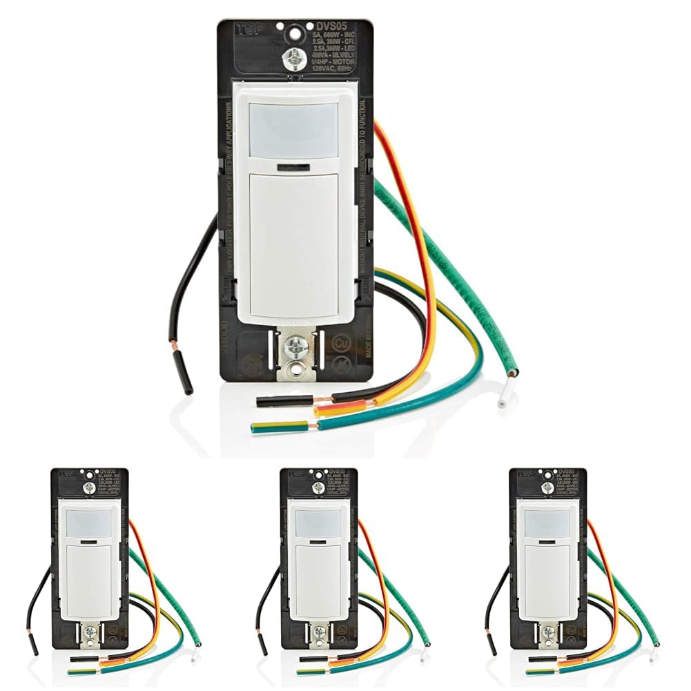 Leviton Motion Sensor Light Switch, Motion Activated, Auto-On/Auto-Off or Manual-On, 5A, No Neutral Wire Required, Single Pole or 3-Way, DOS05-1LZ, White/Ivory/Light Almond