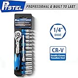 PTSTEL 14 Pieces Socket Wrench Kit, 1/4” Drive Socket Set with 72 Teeth Release Ratchet Wrench and Extension Bar, CR-V Sockets