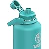 Takeya Pickleball Stainless Steel Insulated Water Bottle with Choice of Lid and Carry Handle, 64 Ounce, Dropshot Teal