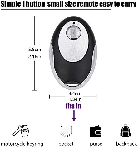 - 1 BUTTON SIMPLE MINI ELLIPSE APPEARENCE + HIGH QUALITY MATERIALS - It is small enough to fit well on a keychain, pocket, backpack, easy to carry. Plus metal reinforced key chain frame, more solid and beautiful than a bulky, 100% plastic remote