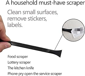 - characteristic:Our multifunctional cleaning scraper tool provides a quick, safe and convenient way to remove small amounts of common substances from most homes and households, such as dried food, candle wax, soap, paint, labels, grease, dirt It can also be used on glassware, dishes, windows, countertops, stoves, sinks, bathtubs, etc.Warm reminder, when removing stickers and labels, use a hair dryer to assist in hot air to make it easier to remove.The scraper tool can also be used as a kitchen scraper, mobile phone prying repair scraper, lottery scraper, desktop scraper, food scraper, label scraper, car scraper, paint scraper.Tpyx focuses on providing customers with innovation, high-quality products and the best service. Most of our products are produced in our own factory. Free user support for any further questions, please feel free to contact our friendly support team for quick resolution. Note: The tip is a bit sharp, please be careful when working.