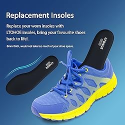 - Why choose us? 1. LTOHOE memory foam insoles bring your shoes back to life! Replace your worn insoles with them and they will extend the life of your favourite old shoes. 2. LTOHOE memory foam insoles are a "tailored" shoe size, no need to cut to size. 3. LTOHOE memory foam insoles help reduce muscle fatigue in feet and legs, allow you to stay on your feet longer. 4. LTOHOE memory foam insoles fit most footwear:Trainers, Work Shoes, Walking Boots, Casual Shoes, Loafers, Slippers... 5. 100% SATISFACTION GUARANTEE NO RISK: We're sure you're going to love this shoe insoles for men, try it out today without risk. If you're not satisfied with the insoles for whatever reason, just contact us within 30 days for a hassle-free full refund, no questions asked. Package Included: 1 pair memory foam insoles for men. The sizes are US size. Please choose your shoes size or size down, base on your feet fat or slim and shoes space. Direction for use: 1.For usual use, please take the original inner soles of your shoes out and replace them with these new ones. But if your shoes too big, you could put these insoles on top of the original ones. 2.The printed logo side is the upside. Once in, the insoles will stay in place. But for some people whose insoles slip around whilst walking. We suggest you could turn the downside up or use Blue Tack. Doctors recommend that you change your insoles regularly to promote healthy feet. Check to see if your insoles are providing the support and cushioning you're looking for. If not, it's time to replace them!