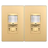 TOPGREENER in Wall PIR Motion Sensor Light Switch, Occupancy Sensor Switch, 𝐍eutral 𝐖ire 𝐑equired, On/Off Override, 𝐒ingle 𝐏ole, 4A, 500W, TSOS5-GDSWP,Gold,2 Pack