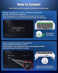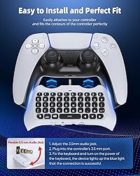 【Ergonomic design】The bluetooth controller keyboard for PS5/PS5 Pro Console is ergonomically designed to enhance the gaming experience, full game keyboard perfect fit for PS5/PlayStation 5 Pro controller.(Note: The controller and keyboard can’t charger at the same time; only the keyboard is charged) 【Voice chat board】Complete for PS5/PS5 Pro QWERTY keyboard and voice chat board for messaging and chatting, convenient for you and your teammates to dominate and enjoy game better.(Before using, please make sure that the keyboard is powered and matched successfully, otherwise the keyboard will not work.) 【Built in speaker】The built-in speaker allows users to listen to all chat audio directly from the keyboard without using a headset, you can also disable this function for PS5/PS5 Pro settings menu and use an external headset. 【Easy to install& carry】Easily snaps into place with no additional software to install in order to run. Small size, light weight, easy to carry. The indicator light show red when charging, and when fully charged the light out. NOTE: After entering the passkey, you need to press the ENTER key to confirm. The detailed operation can be seen in the video. 【Pair automatically】Enter the passkey on the wireless keyboard and then confirm your entry within 30 seconds, the indicator light is green when the connection is successful. After the connection is successful, you can use the keyboard again to pair automatically. If the pairing fails, you can restart the keyboard, or delete the pairing information to pair again.