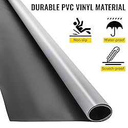 【SECURE & COMFORTABLE】- Color: Grey/Black; Thickness: 0.06"/1.5 mm; Product Weight: 99.2 lbs/45 kg; With the perfect balance of comfort and stability, this dance floor mat features a matte surface to keep the floor from sliding around and your feet from hurt. 【UPGRADED PVC MATERIAL】- The high-quality dance floor roll is manufactured from wearproof, non-slip, and lightweight PVC material, providing dancers with the durability they need. This 6.6 x 49.2 ft roll provides 324.7 square feet of coverage to give you plenty of space to practice. 【EASY & QUICK ASSEMBLY】- It is convenient to tape the portable Marley dance floor down for a temporary or semi-permanent installation by simply rolling them out. You can just turn the double-sided floor over for a perfect match. 【LABOR-SAVING CLEANING】- The dance flooring is easy to clean and maintain. All work will be done instantly by sweeping any loose dust or dirt, removing stains with a damp mop, and gently scrubbing away scuffs. 【MULTI-USE APPLICATION】- This practice dance floor works well for a variety of types of dance that involve a soft shoe or bare feet, including ballet, jazz, hip hop, and modern dance.