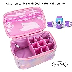 - All-in-one Kids Nail Stamper Carrying Case: Compatible with Cool Maker GO GLAM nail stamper, which can hold all nail stamper accessories in one bag, such as nail stamper studio, nail polish, manicure tools and pattern pods. Glossy Nail Stamper Kits Organizer: Size: 7.87’’ x 5.12’’ x 3.94’’; 0.4lb; Designed with 1 zip clear pocket for nail polish, manicure tools, 1 sections for GO GLAM nail stamper studio, 9 slots for nail pattern pods. Watertight: KISLANE is committed to offer high quality storage bag, so this carrying case for GO GLAM nail stamper is made of premium watertight material, which avoids being wet because of kids’ careless. Easy to Clean: Carrying case for Cool Maker GO GLAM nail stamper is made of dust proof surface, which is convenient to clean up by wiping the surface. Cute and Practical Gift: This carrying case with strong carry handle is great for being a gift for kids, girls to hold GO GLAM nail stamper kits, taking out with friends to have fun.